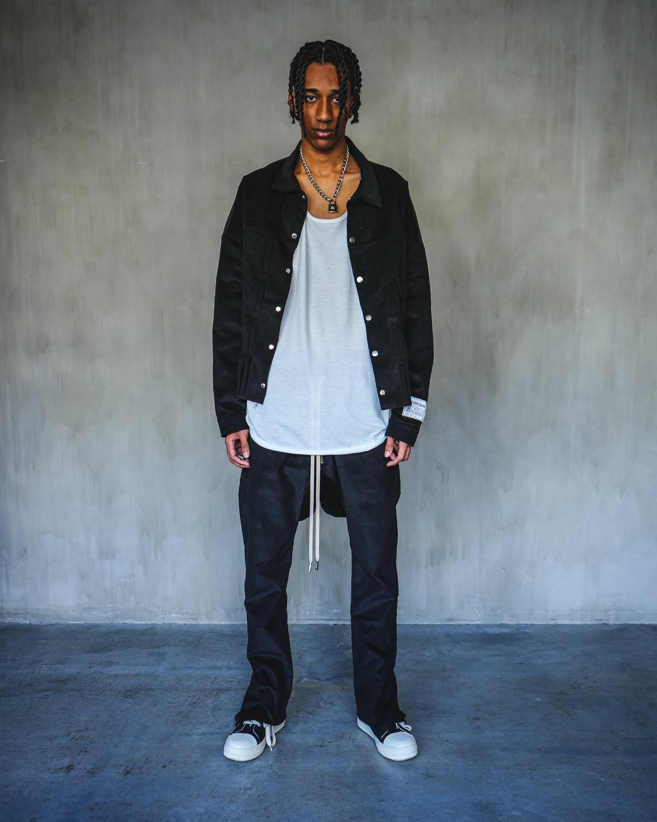 太畝コーデュロイの光沢感がラグジュアリーでありながらも無骨さを演出してくれます。